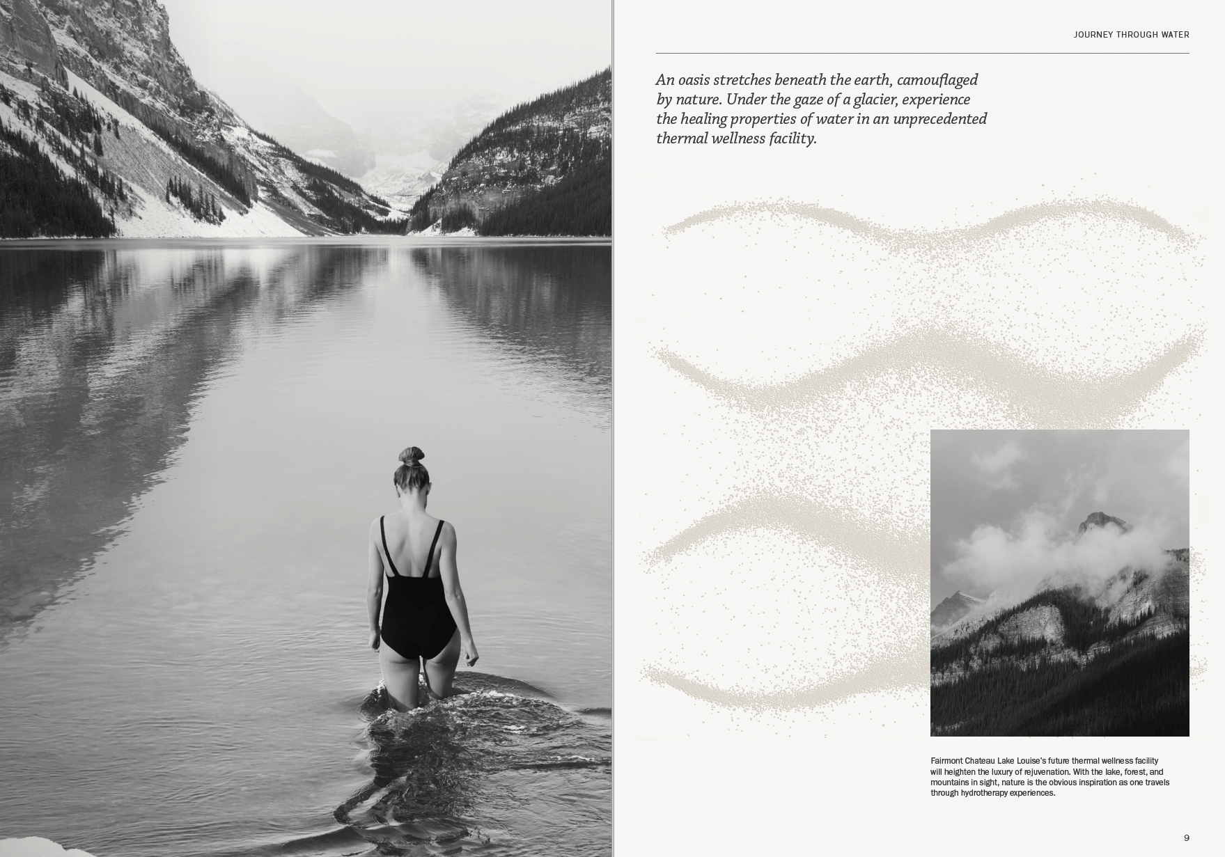 With construction on this facility underway, I was engaged by Toolbox Design to strategize editorial direction and write all content for an in-room magazine. Its pages speak to the Chateau’s history of wellbeing, treatments in the future facility, the architect’s vision, sustainable practices, activities indoors and out, food and drink, and that ever-present wonder.